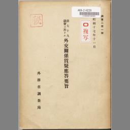 Dai shichijuuku gikai ni okeru gaikou kankei shitsugi outou youshi