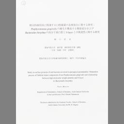 Konsensei shishuuen ni kanrensuru koukou saikin no hyousou tanpaku ni kansuru kenkyuu : Porphyromonas gingivalis no senmou o kouseisuru biryou seibun oyobi Bacteroides forsythus no koubunshi tanpakushitsu to S-layer tono kanrensei ni kansuru kenkyuu