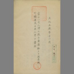 Bunka 5 tatsu no toshi tou 11gatsu nyuushin no tatsu 7ban tousen yori sourai sourou gaikoku hyouryuu nihonjin moushikuchi kakinuki