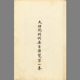 大理院判例要旨匯覧 第一巻