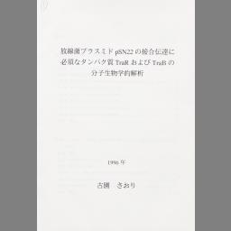 Housenkin purasumido pSN22 no setsugou dentatsu ni hissuna tanpakushitsu TraR oyobi TraB no bunshi seibutsugakuteki kaiseki
