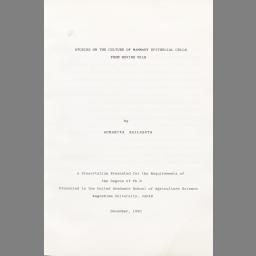 Studies on the culture of mammary epithelial cells from bovine milk