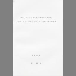 Kaorinaito to Mg kagoubutsu kara no chimitsushitsu : kodieraito seramikkusu no gousei ni kansuru kenkyuu