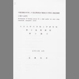Shihan tanekouji o riyou shita kouhinshitsu shouyu no jouzouhou no kaihatsu to jouzou kikou ni kansuru kenkyuu