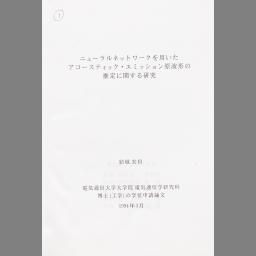 Nyūraru nettowāku o mochiita akōsutikku emisshon genhakei no suitei ni kansuru kenkyuu