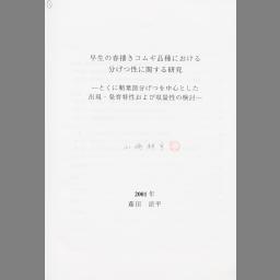 Wase no haru maki komugi hinshu ni okeru bungetsusei ni kansuru kenkyuu : tokuni shouyou setsu bungetsu o chuushin to shita shutsugen hatsuiku tokusei oyobi shuuryousei no kentou