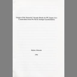 Origin of the Setouchi volcanic rocks in SW Japan arc : constraints from Pb-Nd-Sr isotope geochemistry