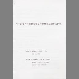 Hachi no suzukuri koudou ni manabu seibutsu kikai ni kansuru kenkyuu