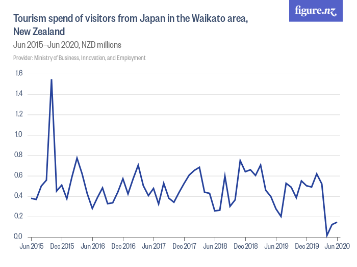 Tourism spend of visitors from Japan in the Waikato area, New Zealand - Dec 2014–Dec 2019, NZD millions