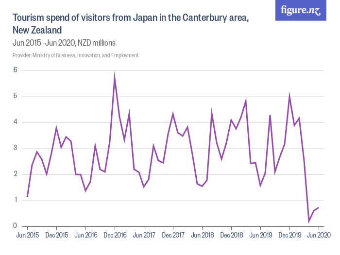 Tourism spend of visitors from Japan in the Canterbury area, New Zealand - Dec 2014–Dec 2019, NZD millions