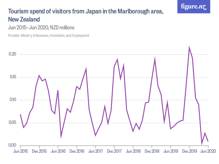 Tourism spend of visitors from Japan in the Marlborough area, New Zealand - Dec 2014–Dec 2019, NZD millions