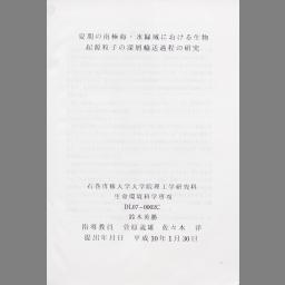 Koshou no sanka kangen kyoukaisou ni okeru mangan no doutai : biseibutsu katei to sono seibutsu chikyuu kagakuteki igi