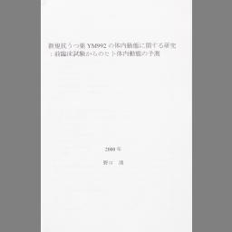 Shinki kouutsuyaku YM992 no tainai doutai ni kansuru kenkyuu : zenrinshou shiken kara no hito tainai doutai no yosoku