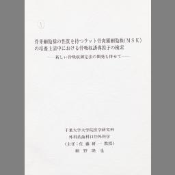 Kotsuga saibouyou no seishitsu o motsu ratto kotsunikushu saiboukabu (MSK) no baiyou jouseichuu ni okeru kotsu kyuushuu yuudou inshi no kensaku : atarashii kotsu kyuushuu sokuteihou no kaihatsu mo awasete