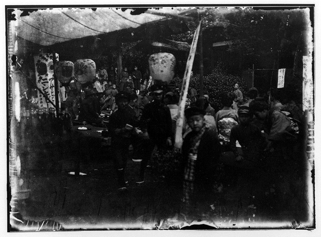 Residents of the Heian Tokugikai Orphanage in Festive Dress, Under a Tent