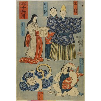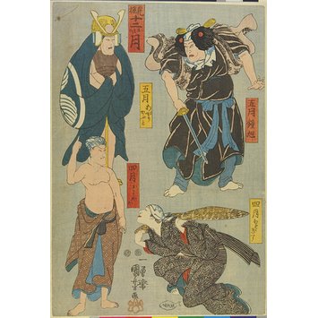 「見振十二おもひ月」「五月 鍾馗」「五月あがりかぶと」「四月 ほとゝぎす」「四月 おしゃか」