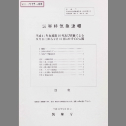Heisei 11nen taifuu dai 18gou oyobi zensen ni yoru 9gatsu 19nichi kara 9gatsu 25nichi ni kakete no ooame to boufuu tou : saigaiji kishou sokuhou