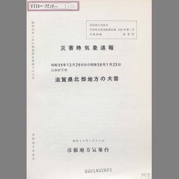 Shouwa 55nen 12gatsu 29nichi kara shouwa 56nen 1gatsu 23nichi ni kakete no shigaken hokubu chihou no ooyuki : saigaiji kishou sokuhou