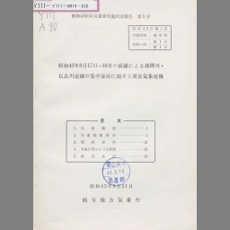 Shouwa 43nen 8gatsu 17nichi 18nichi no zensen ni yoru hidagawa nagaragawa ryuuiki no shuuchuu gouu ni kansuru ijou kishou sokuhou