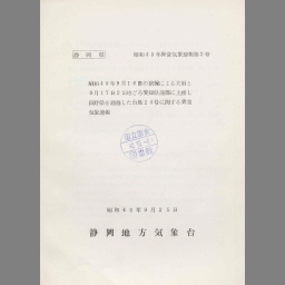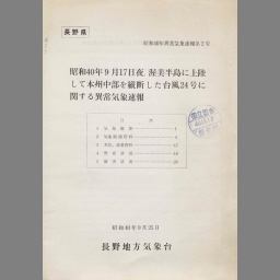 Shouwa 40nen 9gatsu 17nichi yoru atsumi hantou ni jourikushite hokujou shi honken seibu o tootsuta taifuu 24gou ni kansuru ijou kishou houkoku