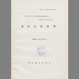 Shouwa 39nen 9gatsu 24nichi yuukoku oosumi hantou ni jourikushita taifuu dai20gou ni kansuru ijou kishou sokuhou