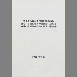 Higashinihon daishinsai fukkou tokubetsu kuikihou ni kiteisuru kuni to chihou no kyougikai ni okeru kyougi no keika oyobi naiyou ni kansuru houkokusho