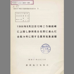 1966nen 8gatsu 22nichi 12ji goro omaezaki ni jourikushi shizuokaken o hokusei ni susunda taifuu 14gou ni kansuru ijou kishou sokuhou