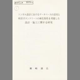 Tonneru sekkei ni okeru dētabēsu no katsuyou to fukitsuke konkurīto no kouka tokusei o kouryoshita sekkei sekou ni kansuru kenkyuu
