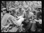 New Zealand soldiers reading letters from home at Vella Lavella, Solomon Islands, during World War II