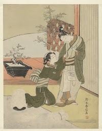 Brief schrijvende courtisane bespied door twee mannen