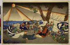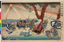 [Tir d'un navire de guerre japonais sur l'île Haiyang-tao] : [estampe] / [dessiné par Mizuno Toshi...