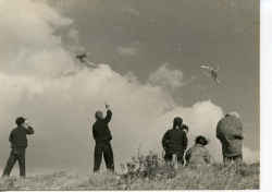 凧揚げをして遊ぶ子どもたち