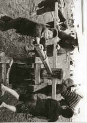 子どもたちも手伝って船を浜に上げる