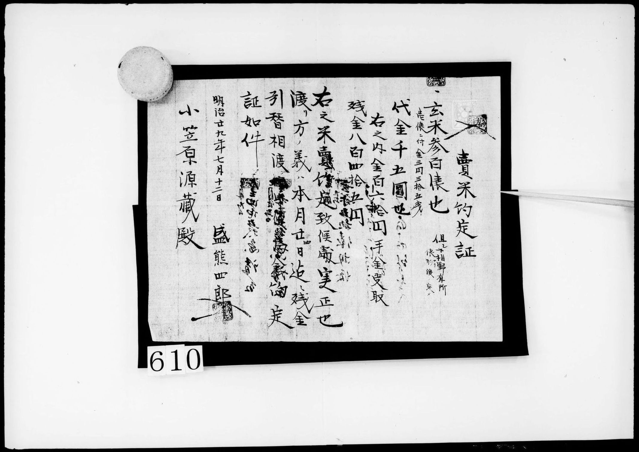 約定証(玄米500俵売却)