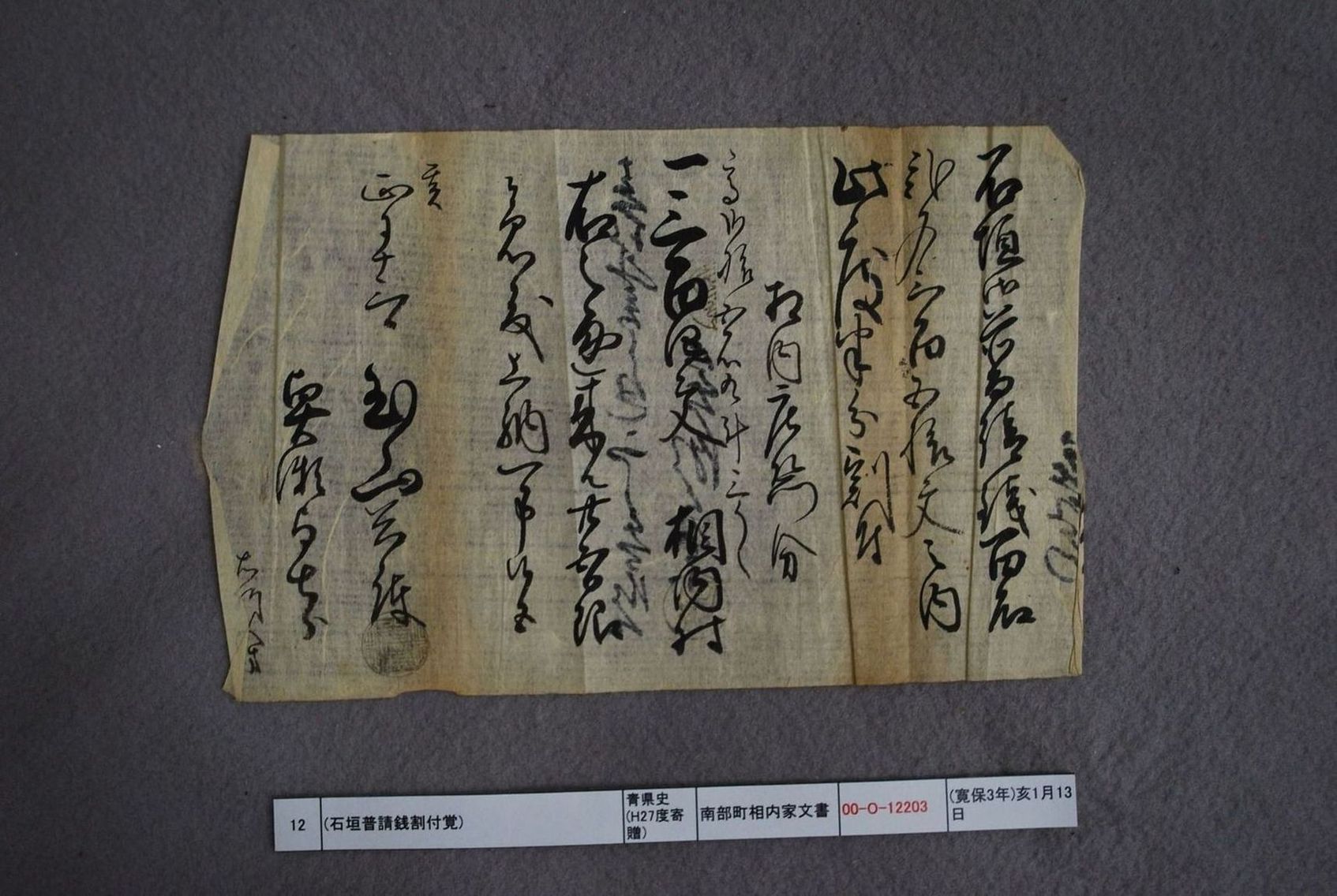 (石垣普請銭割付覚)