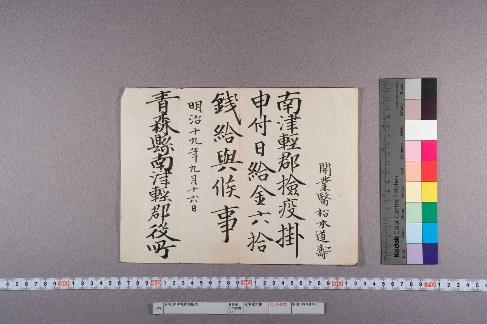 辞令(南津軽郡検疫掛)