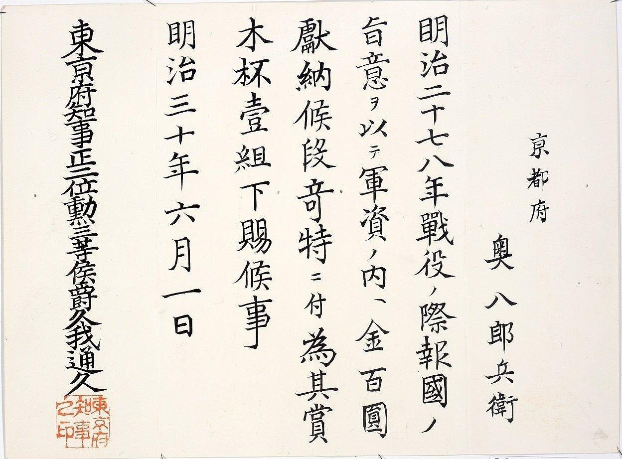 日清戦争軍資寄附感謝状