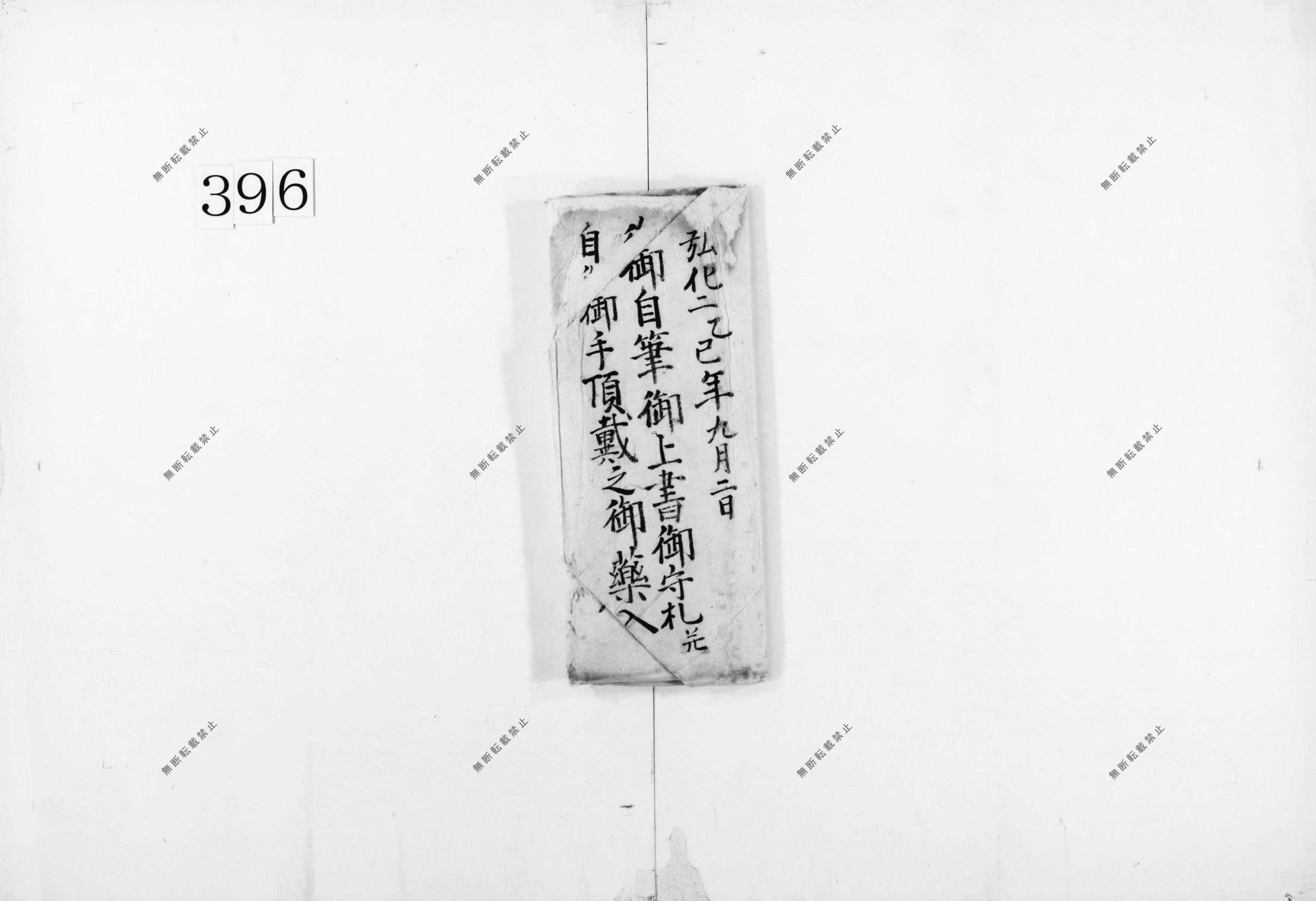 御自筆御上書御守札并自御手頂戴之御薬入