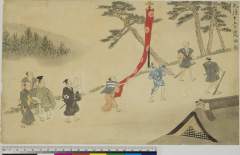 In the Snow at Tsukawara, Sado Province (Sashū Tsukawara setchū), from the series Illustrated Life of the Great Priest Nichiren (Kōsō goichidai ryakuzu)