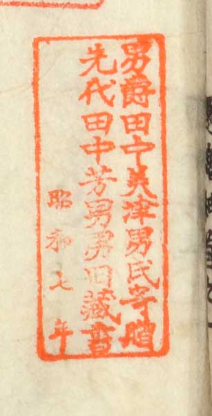 男爵田中美津男氏寄贈 先代田中芳男男旧蔵書 昭和七年