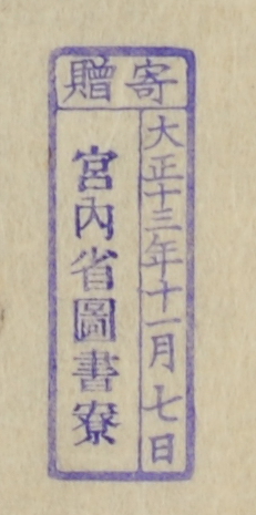 寄贈/大正十三年十一月七日 宮内省図書寮