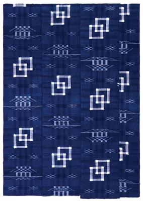 Dark blue-ground bedding cover (futonji) with pictorial ikat (e-gasuri) pattern made in the San'in Region