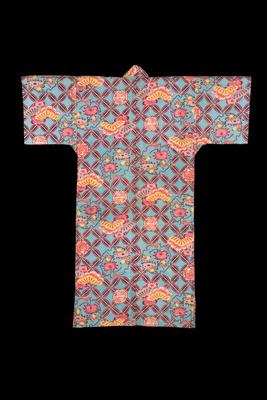 Robe with "Bingata" (Paste-Resist) Decoration of Birds and Flowers on White Ground