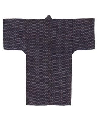 Dark blue-ground kimono with white ikat (kasuri) pattern made in Niigata Prefecture