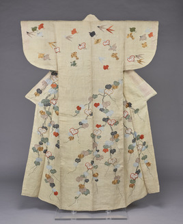 Summer Robe (Katabira) with Leaf and Fan-Shaped Birds and Ivy