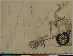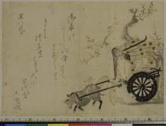 Two Court Ladies Pulling Flower Cart, with poems by Ren'unsha, Kikkasha Suyoshi (Shukei), Sashukusha ??, Seiseisha Misame and Teikunsha