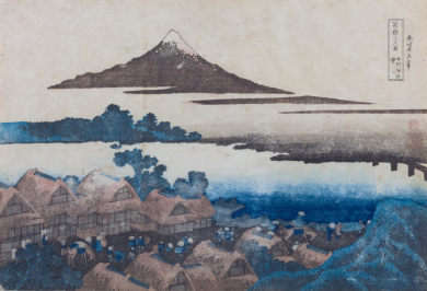 Lake Suwa in Shinano Province (Shinshū Suwa-ko), from the series Thirty-Six Views of Mount Fuji (Fugaku sanjūrokkei)