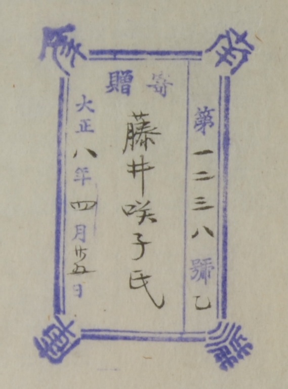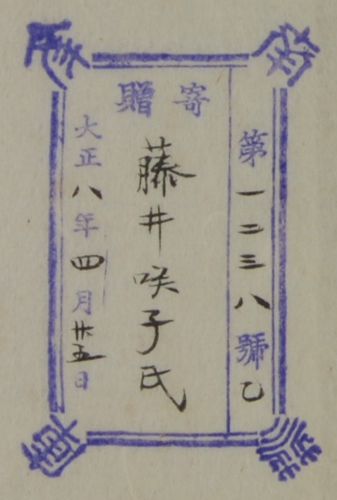 南葵文庫/第 号/寄贈 大正 年 月 日