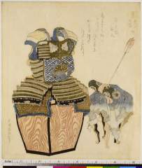 Tachibana Armor with Chrysanthemum-Stream Motif (Kikusui yoroi) and Sutra Scroll of Universal Gate Chapter (Fumonbon), from the series Four Types of Existence (Shishō no uchi), with poem by Sōkaen Takemaru