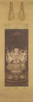 Welcoming Descent of Amitâbha Buddha (Amida Nyorai) flanked by the Bodhisattvas Avalokiteshvara (Kannon Bosatsu) and Mahâsthâmaprâpta (Seishi Bosatsu); Amida sanzon raigō zu | Cultural Japan